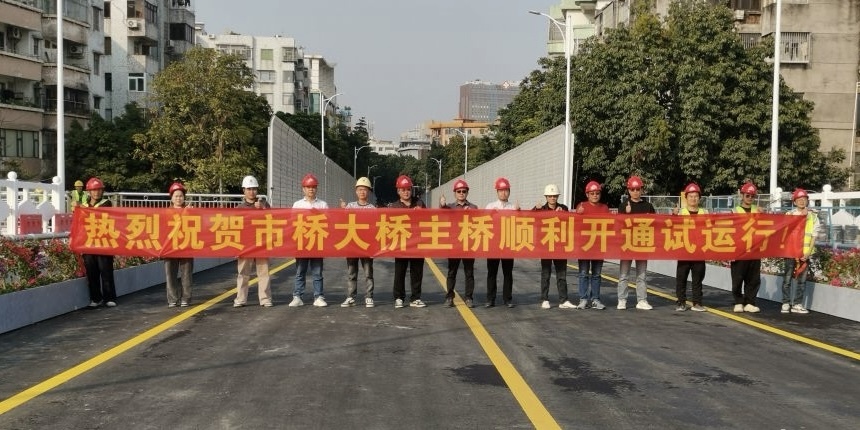 改造后的市桥大桥全长250.2米,引桥引道段宽11.0米,主桥段宽21.0米,采用“2×20米预制砼空心板+2×16.6米UHPC预制工字梁+(34+34+33)米预制小箱梁+2×18米UHPC预制工字梁+2×20米预制砼空心板”的简支梁桥跨组合,保持双向两车道通行。